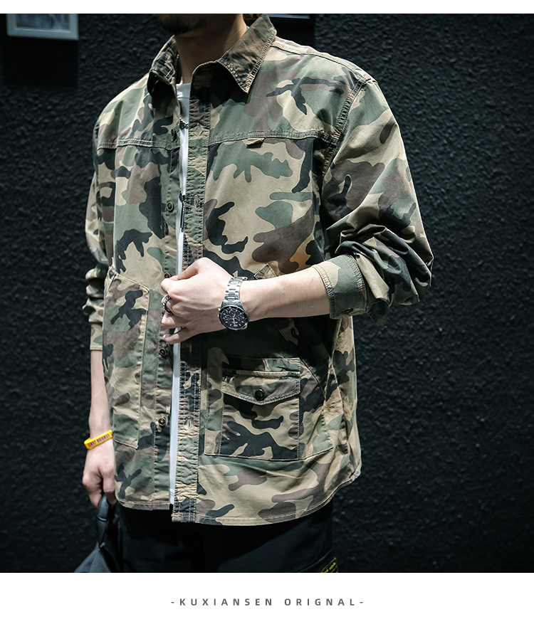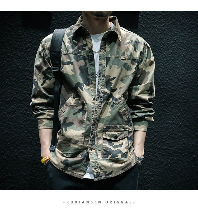 Camouflage Long Sleeve Tooling Shirt Jacket Men