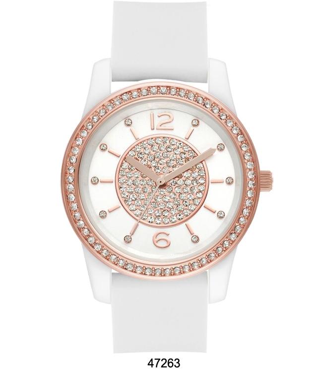 M Milano Expressions White Silicon Band Watch with White/Rose Gold Stone Case and White Dial